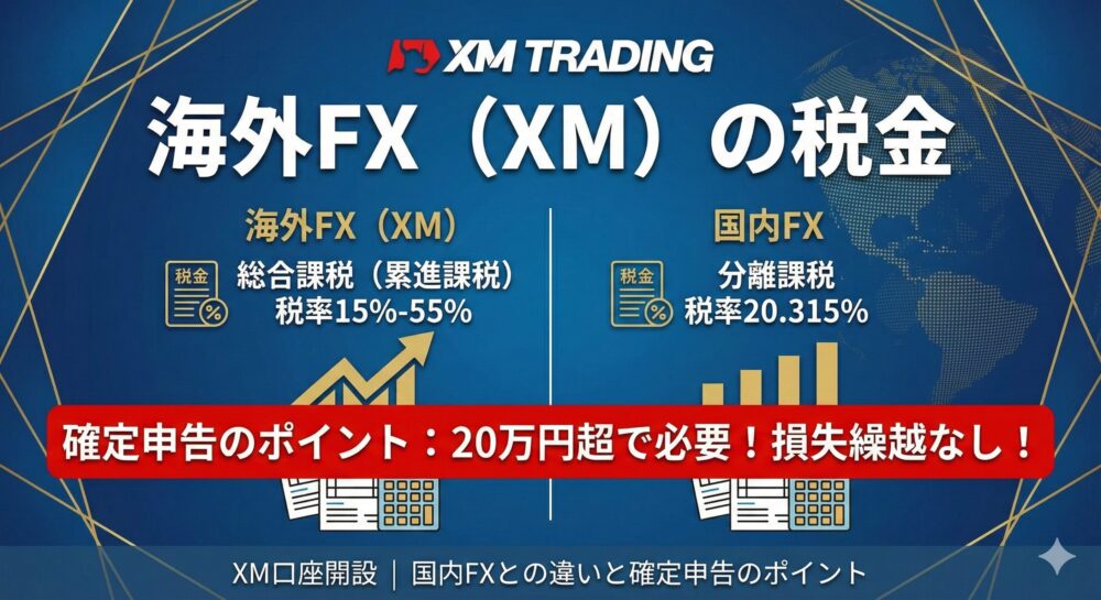 - 海外FX(XM)=雑所得(総合課税)として扱われるのが一般的